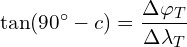 Die Arkustangensfunktion liefert direkt den Winkel, also 90° – c, und wir erhalten