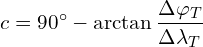 Dieselben Betrachtungen können nun auch für Kurse mit westlichen Komponenten angestellt werden. Dabei wird sich dann zeigen, dass der Arkustangens nun von 270° abgezogen werden muss, wie es die untere Formel in Gleichung 5.4 angibt. Die Hilfswinkel im Bild betragen dann 270° – c und c – 270°.